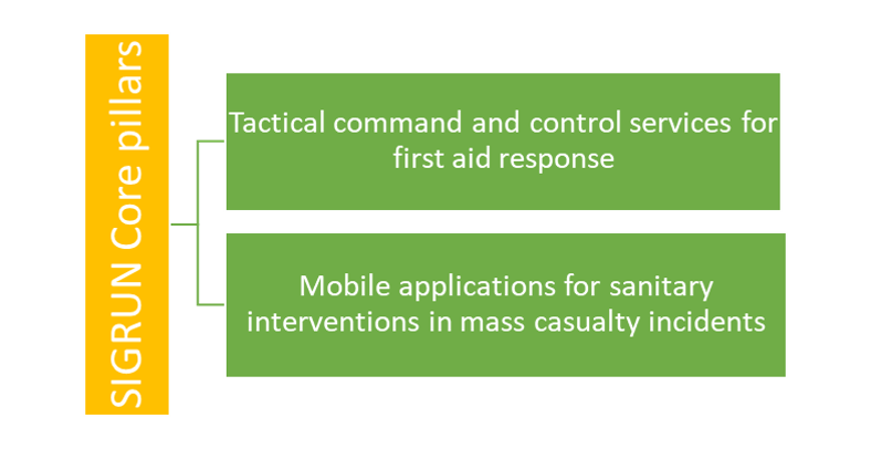All of this will be developed under an isolated multi-domain environment where the real operation of existing solutions can be combined with simulated EMS response missions, communications, feeds, etc. As agreed with the participant end-user, SIGRUN will depict a C2 focused platform to be held by two core functional pillars: